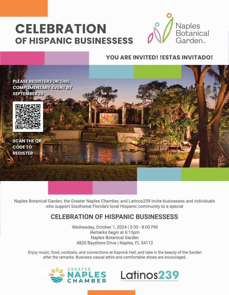 Naples Botanical Garden, the Greater Naples Chamber, and Latinos239 invite businesses and individuals who support Southwest Florida's local Hispanic community to a special CELEBRATION OF HISPANIC BUSINESSES
