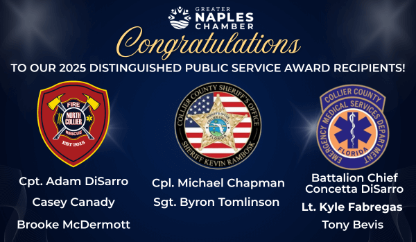 Established in 2003, the Distinguished Public Service Awards are presented annually by the Greater Naples Chamber in recognition and honor of first responders who are critical as a team or individual for dedicating their careers to the well-being of Collier County.